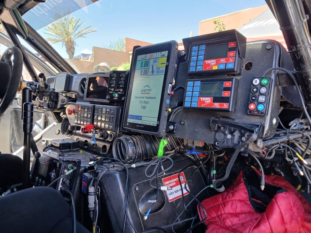 ES4. 350 km. M’Hamid/Oum Jrane. L’affaire Tournesol ! qui tourne mal ! La journée d’hier aura laissé des traces pour les hommes et les mécaniques. Dans cet océan de sable, la navigation prenait toute sa saveur et beaucoup de concurrents se sont fait embarquer dans les chemins de traverse. Après quelques passages montagneux et techniques, les concurrents trouvaient une plaine désertique sur 60 km ou poussent des acacias. Puis, la caravane remontait vers le nord entre des montagnes qui rappellent celles d’un tajine. Voilà un véritable terrain de jeu pour pratiquer le cross-country. Sous l’arche, à la file indienne, très vite l’ambiance s’échauffe, et la ferveur monte au fur et à mesure du top départ. Ces derniers jours, les Français brillaient à l’image du # 105 Julien Balbec, du # 106 Stéphane Poulet, du # 116 Loïc Bonicel, et du # 118 Georges Mazier. À 8h30 tapante, au coup de clairon, le motard part comme un boulet de canon, puis disparaît dans une poussière ocre. Les 70 premiers km se font autour de M’Hamid, puis direction le cratère. La deuxième partie était très roulante avec beaucoup de pistes parallèles (PP) I I I I. Sur ce genre de tronçon,les bolides devraient utiliser toute la puissance de leur engin. En revanche, la troisième partie de 50 km est très trialisante avec plusieurs dangers II et III (escaliers, crevasses, trous…), en descente. De quoi refroidir l’ardeur de quelques-uns, car c’est toujours dans le désert qu’on casse sa pipe ou sa bouteille d’eau ! Dans la catégorie auto, devant on retrouvait les mêmes, malheureusement sans l’équipage français #311 Hugues Moilet/Mayeul Barbet qui a été contraint à l’abandon. Du coup, tous les regards étaient rivés sur le Toyota Overdrive # 301 de l’équipage Van de Brink, qui faisait preuve d’une motivation de circonstance pour remonter au classement. Il était donc logique de trouver dans le peloton de tête, le # 301 Van Den Brink, # 304 Thijs, # 303 Rizzardi, # 305 Besson et # 306 Van Loon. Des lames aiguisées prêtes à s’emparer du détroit de Magellan !
