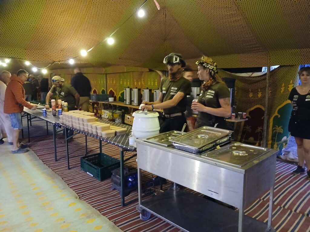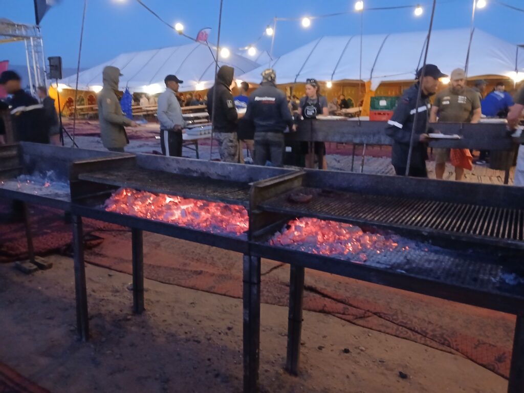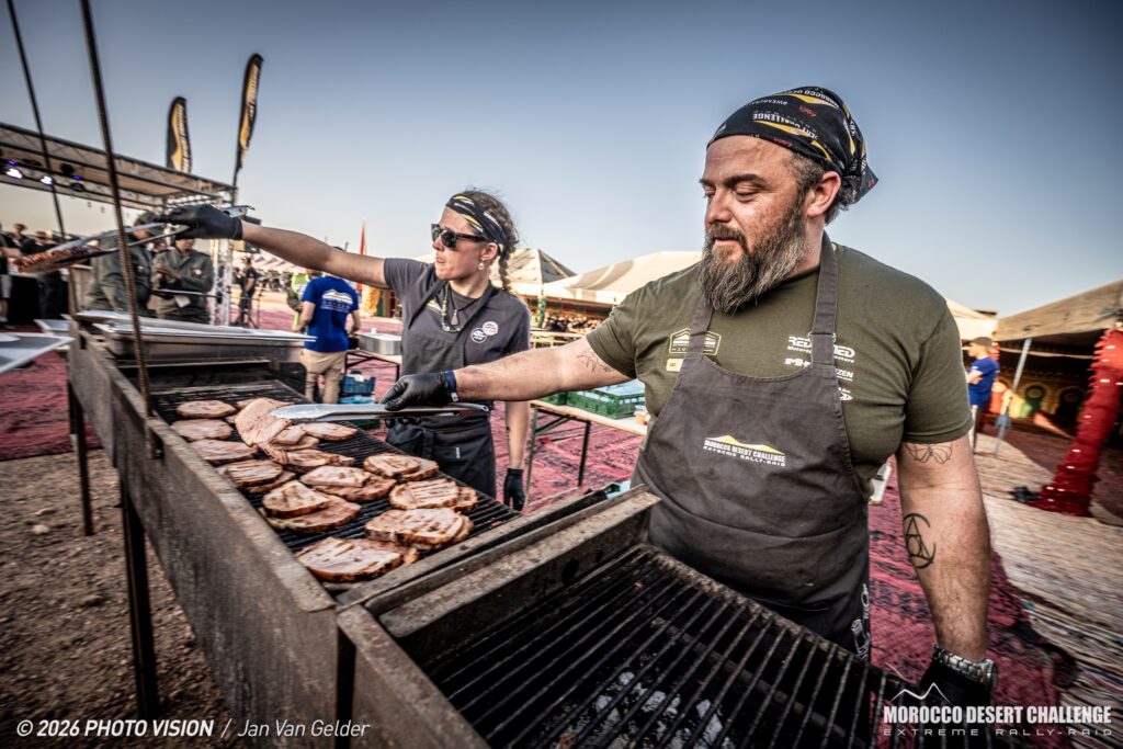 Julien Dalbec # 105 KTM 450 « Je termine 3ème aujourd’hui, mais je conserve mes 30 mn d’avance au classement général. Depuis le début de la course, je ne suis qu’à 70% de mes capacités, pour éviter une chute qui serait fatale. Le plus important pour moi c’est de rester dans le trio de tête jusqu’à l’arrivée, et pourquoi pas, soulever le Graal. J’aime ouvrir la piste, ça va m’aider à progresser et à maîtriser la nav pour les prochaines compétitions. J’en profite pour remercier mon partenaire pneumatique, la société Mites, qui me suit depuis le début de ma jeune carrière de pilote ».# 106 Stéphane Poulet Yamaha 450 « Ça va mieux que la première journée, où j’avais cassé la roue arrière. La sentence a été sans appel, 35 heures de pénalités. À ce moment précis, j’avais le moral dans les chaussettes. Maintenant, il revient, et c’est tant mieux. Pour l’instant, la machine fonctionne bien, pas de soucis particuliers. Mon objectif, c’est de passer la ligne d’arrivée et de faire plaisir à ma fille et à mon fils, qui tous deux sont avec moi sur cette course pour assurer la mécanique ». Classement ES4. Moto 1 # 121Wouter de Graaff Husqvarna 450. SSV 1 # 205 Janus Van Kasteren/Marcel Snijders Can, Am Maverick. Auto 1 # 301 Mitchel Ven de Brink/Bart Van Heun Toyota Hilux Overdrive. Camion 1 # 501 Huzink/Blok/Salomons/ Iveco De Rooy. Il est temps maintenant de reprendre des forces au bivouac. Dans les cuisines, tout le monde s’active pour régaler la caravane. À table, ce soir c’est barbecue.