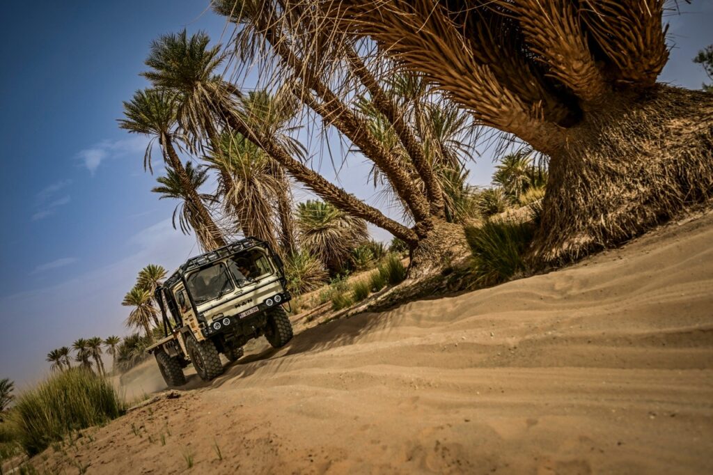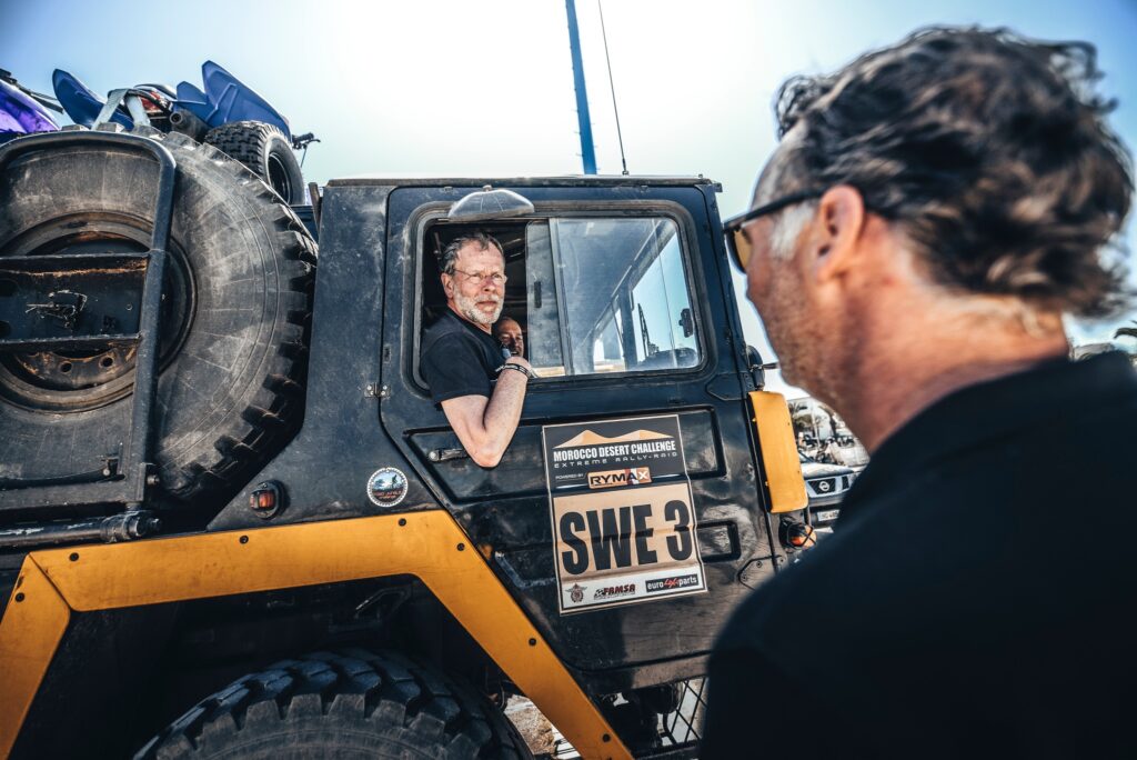 Parmi les équipages français, il y a Stéphane Chesneau et son frère Frédéric sur Century CR6 # 308. Stéphane vit depuis des années sur l’île de la Réunion, il est venu spécialement pour participer au Morocco Désert Challenge. 10 000 km et onze heures de vol séparent sa ville de résidence et le Maroc « C’est le seul rallye que je fais par an. Je suis toujours aussi content d’être ici, d’autant que le véhicule fonctionne jusqu’à maintenant à merveille. 4ᵉ au général ce soir, c’est une place inattendue, car devant, ça roule vite, même très vite. Demain, c’est la der, nous espérons maintenir le rythme jusqu’à Saïda. Ensuite, dès lundi, je repars à la Réunion. » Conformément aux indications de Gert Duson au briefing, le tracé est le reflet de la réalité, de même que, de celui qui le réalise, mais entre la dernière reco de l’organisateur et la validation de Sébastien Delaunay, beaucoup de choses ont pu se passer. Une tempête de sable peut avoir effacé les traces, modifié le profil des dunes ou que la pluie a changé la configuration du terrain. C’est sous le ciel immensément bleu du Sahara, dans cet immense désert aride, que voguent les dromadaires appelés méharis, où règne un soleil chaud, où chacun s’incline et baisse les yeux. La grande majorité des concurrents ont pu apprécier la piste Citroën. Pour certains magnifiques, pour d’autres, ces pistes ressemblaient aux vastes plaines du Kazakhstan.