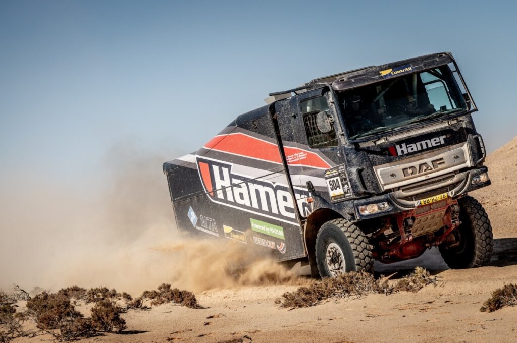 Des corsaires aiguisés comme des lames de rasoir, qui voulaient en découdre avec le leader. Autrement dit, des morts de faim qui avaient bien l’intention de lui faire manger la poussière ! À moto, le Français Julien Dalbec # 105 part comme une balle à l’assaut des dunes, et dès que l’occasion allait se présenter, il filerait à l’Anglaise pour porter l’estocade à son rival. vrooomm, vrooomm, vrooomm …. En camion, le # 501 Kay Huzink impose la cadence à tous ses adversaires au volant de son Iveco de l’écurie De Rooy. Cette position de lièvre n’est pas toujours l’idéal, dans la mesure ou ses adversaires se jettent dans la bataille pour lui mettre la pression et le pousser à la faute. Coup dur pour l’Optimus # 305 de Jean-Pascal Besson. Il s’arrête un bon moment sur la piste. Finalement, il passera la ligne d’arrivée à 16h30 avec plusieurs boulons de cardans cassés. Quant au motard français, # 105 Julien Dalbec, il reprend les commandes et conforte sa place de leader avec 22 mn d’avance. Classement ES 6 : Moto 1 # Julien Dalbec KTM. Auto 1 # 312- Rients Hofstra / Evert Boersma REVO GTR T1+. SSV 1 # 205 Janus Van Kasteren / Marcel Snijders Can Am Maverick. Camion 1 # 501 Kay Huzink / Corné Blok Iveco.