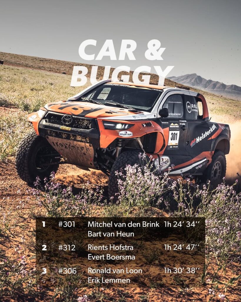 Côté français, face à l’armada hollandaise venue en force, MD Rallye Sport affichait ses ambitions avec deux Optimus, l’un piloté par Jean-Pascal Besson # 305, et l’autre # 311 par Hugues Moilet. Mais aussi, le Century CR6 # 308 piloté par Frédéric et Stéphane Chesneau. En auto vintage, le Toyota HDJ 80 # 320 de l’équipage Patrice Benoit/Hervé Demaison (Mautret Racing), l’équipage # 325 de Baptiste Poilvé/Émilie Trompat Toyota HDJ 80. En SSV, le # 224 Franck Boulay / Patrick Debaussage sur un Can Am Maverick R. Le # 231 Loïc Fretbourg/Fabrice Molitor sur Can Am Maverick R, et Roland Perret # 246 sur un Polaris RS1. À moto, on retrouve le talentueux Julien Dalbec # 105 KTM 450, Stéphane Poulet # 106 Yamaha 450, Thierry Costard KTM 450 Factory, Maxence Costard 450 KTM Factory, Loïc Bonicel KTM 450, Georges Mazier KTM. Dans la catégorie camion, aucun Français sur cette épreuve.