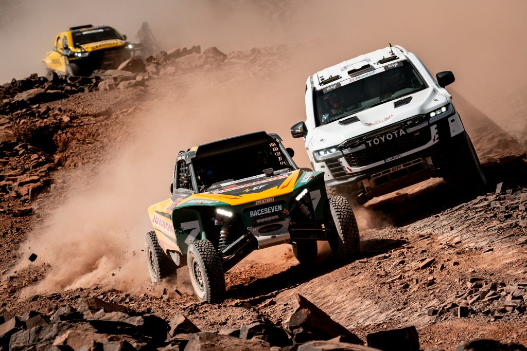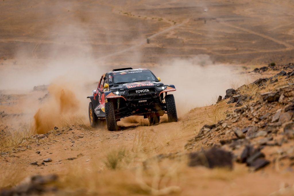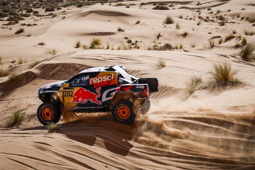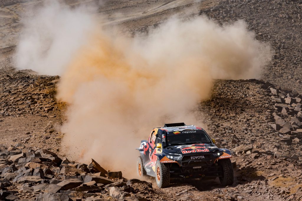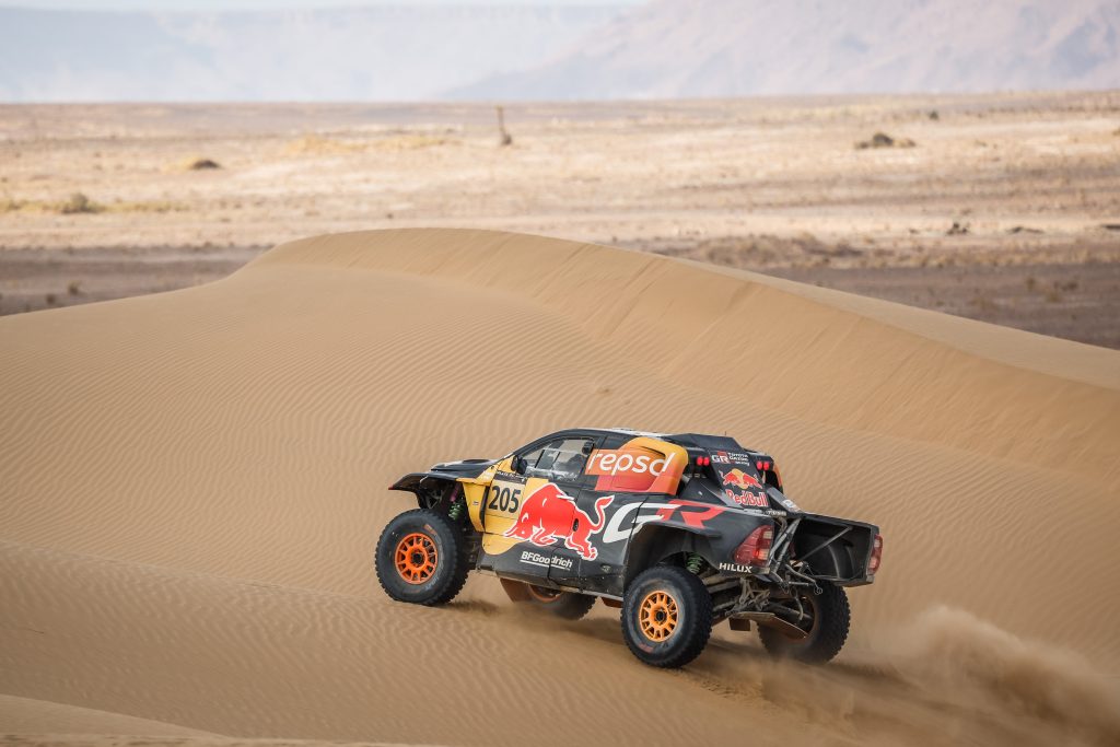 En auto, Nani Roma # 227 remporte cette étape avec Ford avec le sentiment du travail accompli d’offrir cette victoire à toute son équipe. Des gars qui travaillent une partie de la nuit dans la poussière et la chaleur, sous la voûte étoilée. Nani Roma : « C’est un sentiment incroyable de remporter cette étape. Pas seulement pour nous, mais vous avez vu à mon arrivée que toute l’équipe était super heureuse et je leur dédie cette victoire. Sans eux, cela n’aurait pas été possible. Ces gars travaillent sans relâche dans la poussière, la nuit, sous la chaleur. Ce n’était pas une étape facile. Au début, il y avait un peu de poussière, mais tout s’est bien passé et Ford remporte une nouvelle victoire. Mon copilote Alex Haro a fait un super boulot. » Dacia et Sébastien Loeb confirment leur forme actuelle en s’emparant du classement général. Derrière la bagarre s’active entre Lucas Moraes # 202 et Nasser Al Attiya # 200. Œil pour oeil, dent pour dent !