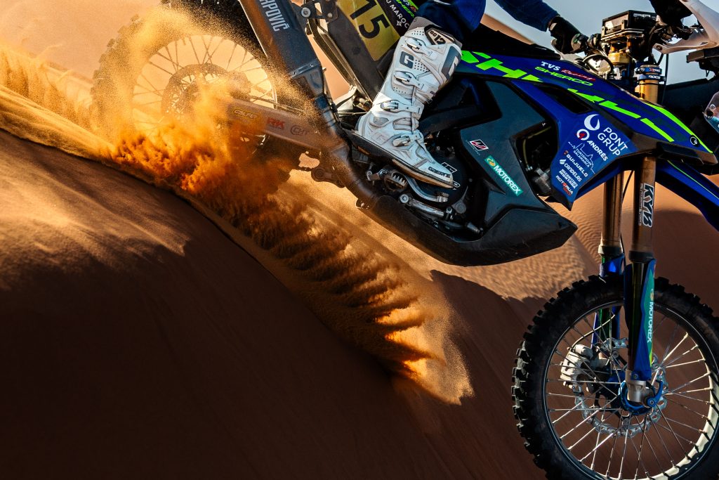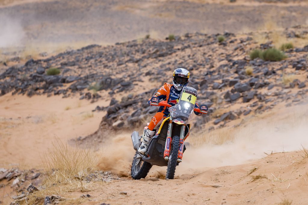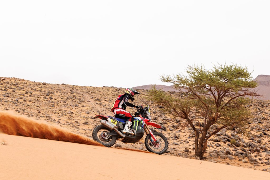 Sur ces pistes poussiéreuses et glissantes, c’est le motard Tosha Schareina qui s’impose pour la 3e fois de suite, avec une avance de 3 mn et 33 secondes sur son adversaire Daniel Sanders # 4, au classement général. Tosha Schareina. # 68 Honda HRC : « Je suis content de gagner et de progresser au classement général. Je suis désolé pour Nacho. C’était vraiment l’homme de l’étape et il a fait du très bon boulot. Félicitations à lui. Demain, je devrais encore ouvrir l’étape sur 216 kilomètres, alors je vais me concentrer là-dessus. »