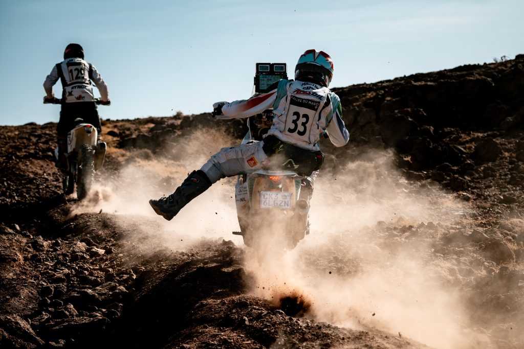 D’ailleurs, cette épreuve révèle souvent des talents cachés. D’autres sont ici pour se préparer au mieux pour le prochain Dakar, à l’image d’Andréa Gava avec sa moto Kove, tout comme Kevin Benavides et Laia Sanz. Le motard marocain Achraf Zoulati nous dit : « C’est un honneur de représenter le Maroc et qui plus est d’ouvrir la piste. J’ai un peu de pression, car, c’est ma première participation au Rallye du Maroc. »