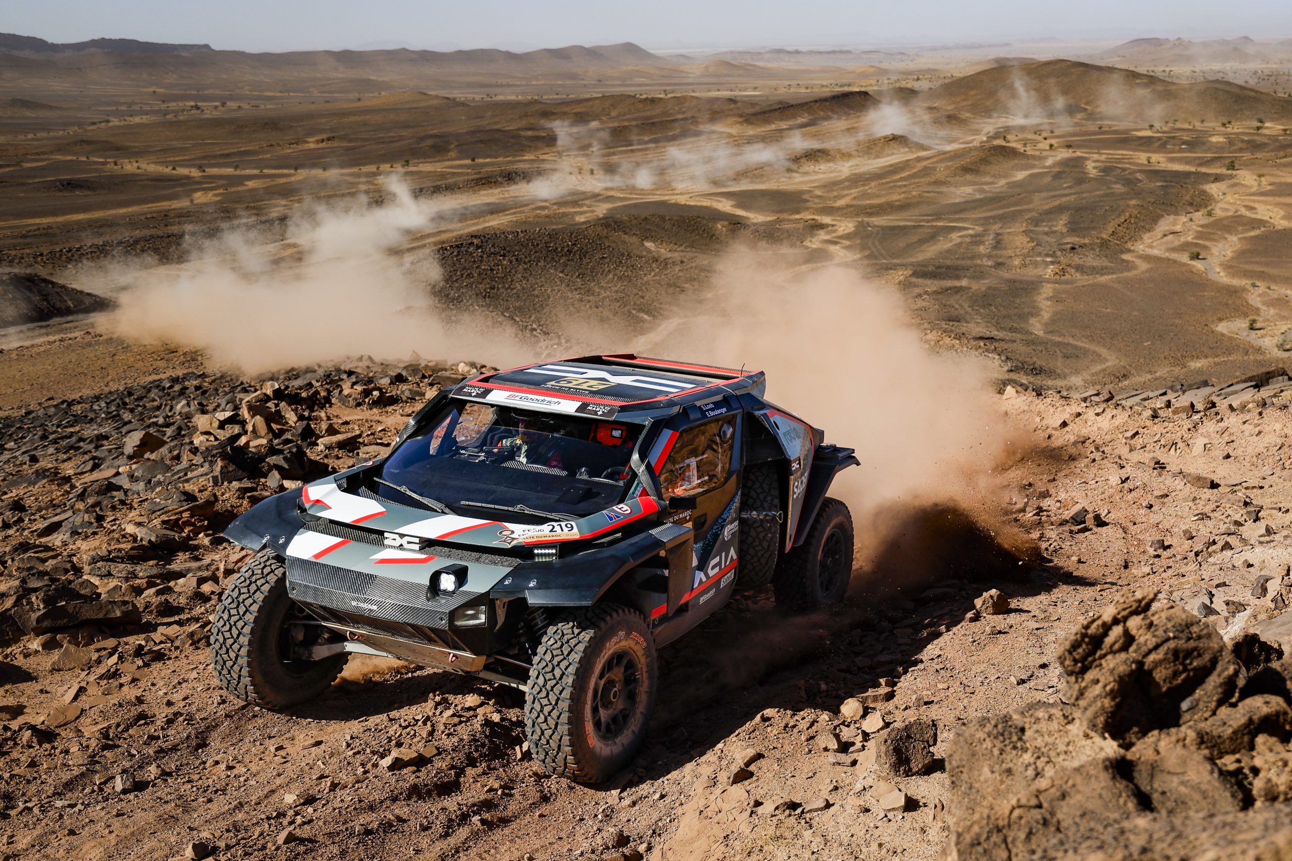 ES5. Erfoud / Erfoud. 311 km, dont 216 de spéciale. Power section FIA / Erfoud / Erfoud 37 km, dont 31 de spécial. Au départ les esprits s’échauffent, puisque, c’est la dernière ligne droite de cette folle semaine. Au programme, des étendus de sable fin à en perdre la boussole. Hier soir, dans les alcoves, ça discutait » Demain, on va le déposer dans le bac à sable, le grand champion, lui et sa Dacia Sandrivers # 219. De toute façon, on ne va pas le laisser prendre le large et on sera toujours dans son rétro’‘. C’est ce que dit les autres concurrents qui sont positionnés à quelques minutes de la Dacia de Sébastien Loeb et d’Edouard Boulanger qui, finalement, s’offrent leur 3e victoire en Rallye-Raid de la saison.