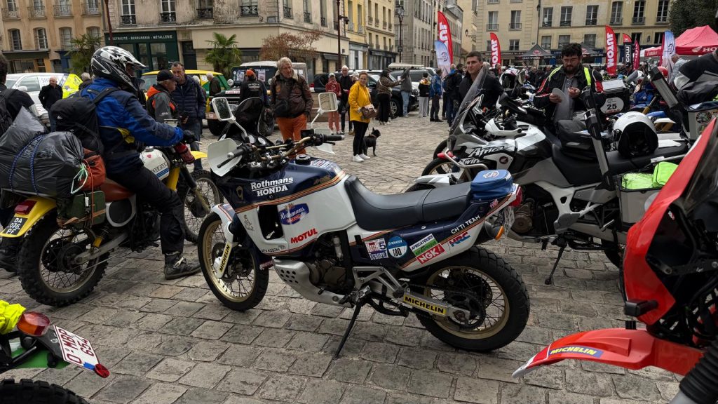 Sur la Place Saint-Louis, parmi les légendes qui ont marqué le Paris-Alger-Dakar, tout le monde a pu reconnaître Martine de Cortanze, la marraine de cet évènement. Elle a été la première femme à avoir gagné cette épreuve en 1979, avec sa Honda 250 XLS. C’est la raison pour laquelle, elle est venue spécialement à Versailles pour encourager les participants de la Route des Légendes 2025. Il y avait aussi Etienne Smulevici, le recordman de participations sur le Dakar.