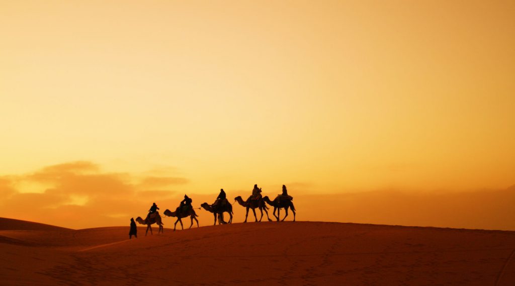 Le soir, sous la voûte étoilée, vous pourrez admirer le coucher de soleil soit de votre chambre d’hôtel, soit, dans un campement atypique en plein désert, pour apprécier l’excellent barbecue. C’est là que la part invisible se cache entre le défi et le mystère d’un désert. Ensuite, c’est un privilège de s’endormir sous la voûte étoilée remplie d’étoiles qui, une à une, s’allument pour éclairer vos rêves. Alors, oubliez tous vos bijoux, vos matériaux, votre portable, votre tablette, car, un marchand de sable n’a jamais fait fortune dans le désert ! Sur l’étape 2 »Crêtes des Dunes » chacun pourra admirer la beauté du paysage, que cette mélodie de la chaleur et du vent, accompagne tant de mystères.