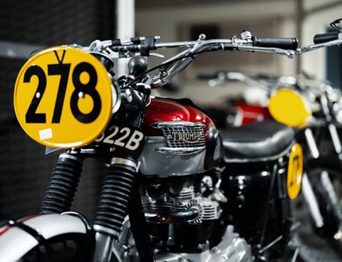 Steve McQueen la légende. Légende des plateaux ayant marqué le paysage cinématographique mondial, Steve McQueen n’a pas seulement laissé en héritage une filmographie d’exception. Il a également transmis une passion dévorante pour l’automobile et la moto. C’est cette passion que les visiteurs du plus beau garage éphémère dédié aux véhicules de collection auront l’occasion de découvrir lors du 50ᵉ anniversaire de Rétromobile. Sa passion commence par la moto. Cette liberté de filer à l’anglaise ! compte plus que tout pour l’acteur. Les quelques dollars d’une bourse qu’il a obtenue pour suivre les cours d’art dramatique à l’école Playhouse de Sanford Meisner ne suffisant pas à subvenir à son quotidien, il arrondit ses fins de mois en gagnant quelques billets verts dans des courses de moto, sur le circuit. Il aurait pu devenir pilote professionnel. « À cette époque, je gagnais beaucoup de courses, et je me faisais deux cents dollars par week-end. De plus, en tout-terrain, Steve McQueen avait un vrai talent. Son ami Ekins en plus d’être un pilote expérimenté, était le distributeur de la marque Triumph. Quand il n’est pas au guidon d’une moto, Steve a un volant entre les mains. Dès la fin des années 1950, avec ses premiers cachets d’acteur, il se paie des voitures de sport au volant desquelles il court les épreuves du championnat américain SCCA.