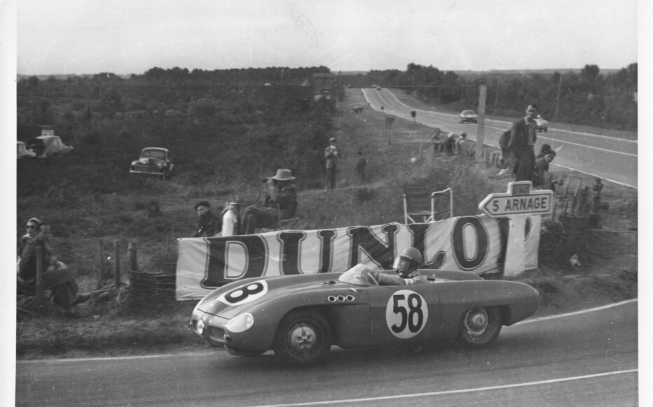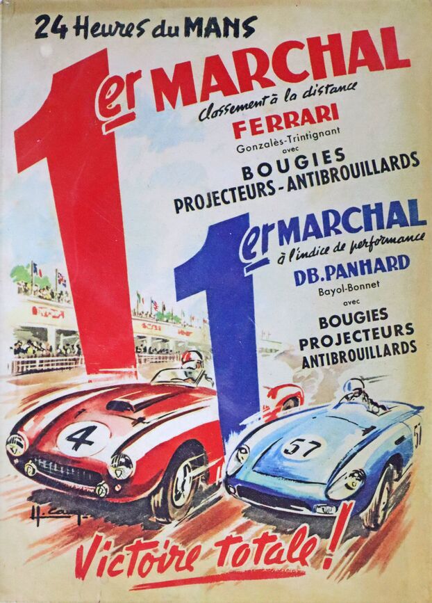 Aux 24 Heures du Mans de 1953, l’équipage (FR) André Moynet et André Bonnet # 57 s’engage sur une D.B Panhard avec un moteur bicylindre à plat de 750 cc .
